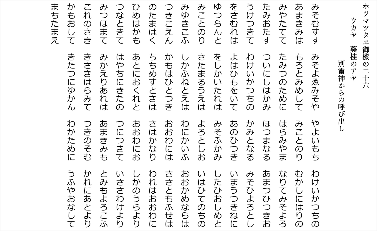 YouTubeチャンネル「たっしー&たー坊の雅流塾」 ホツマツタヱ基本講座に合わせた朗読用の原文です(^^)v
