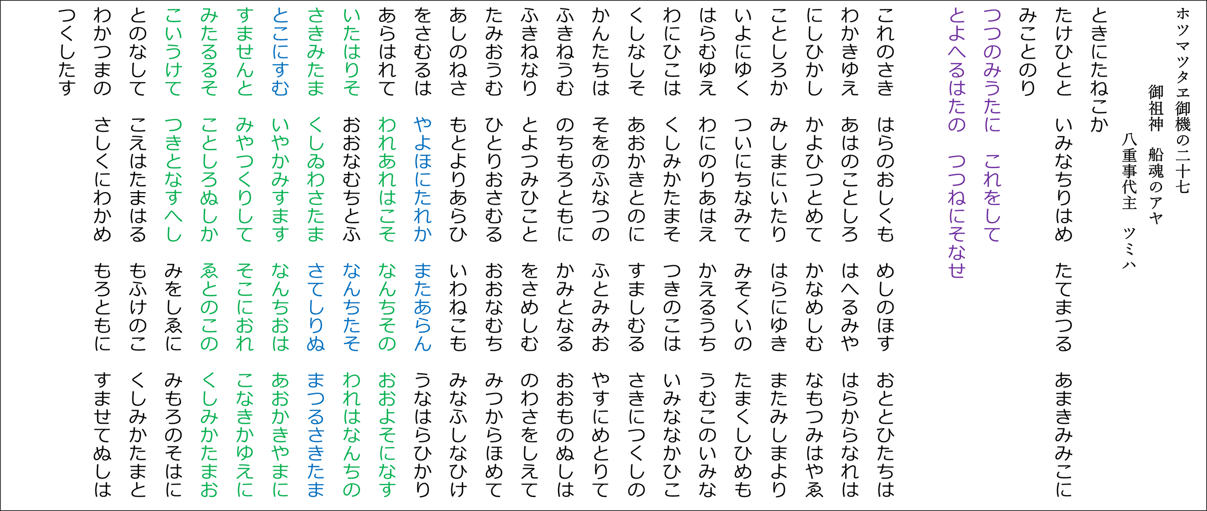 YouTubeチャンネル「たっしー&たー坊の雅流塾」 ホツマツタヱ基本講座に合わせた朗読用の原文です(^^)v