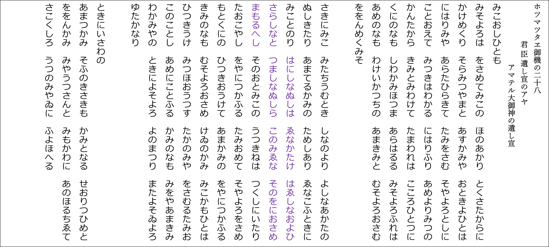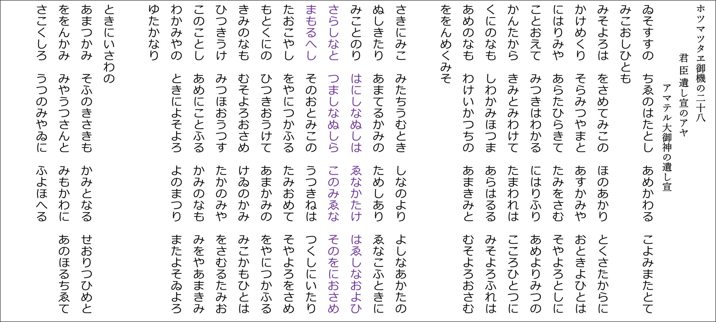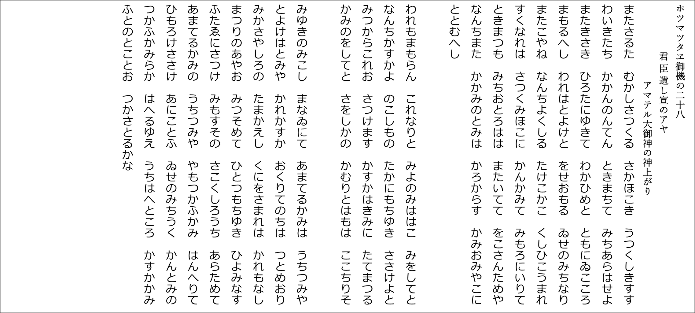 YouTubeチャンネル「たっしー&たー坊の雅流塾」 ホツマツタヱ基本講座に合わせた朗読用の原文です(^^)v