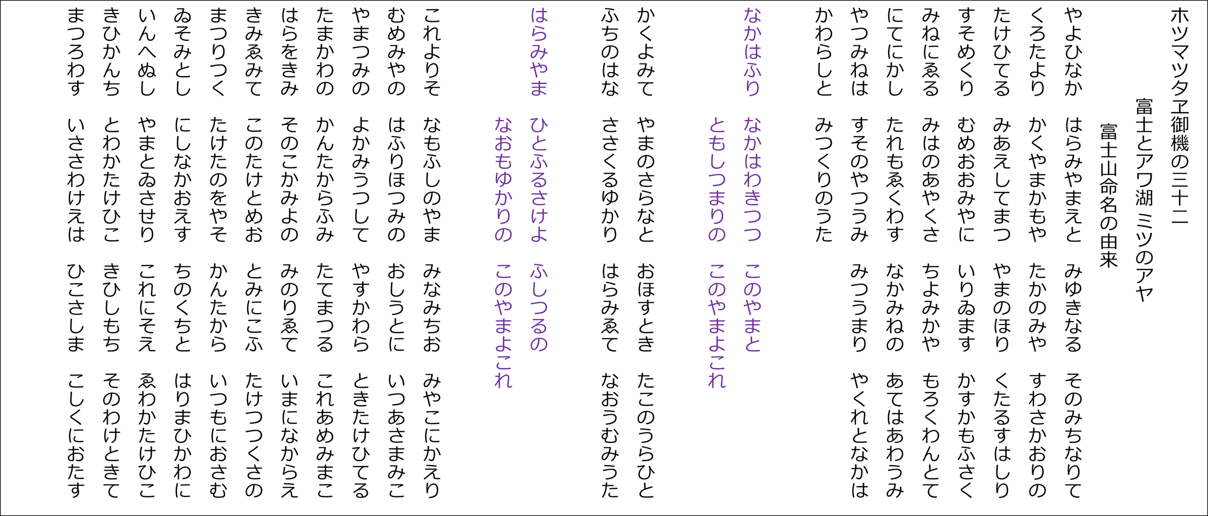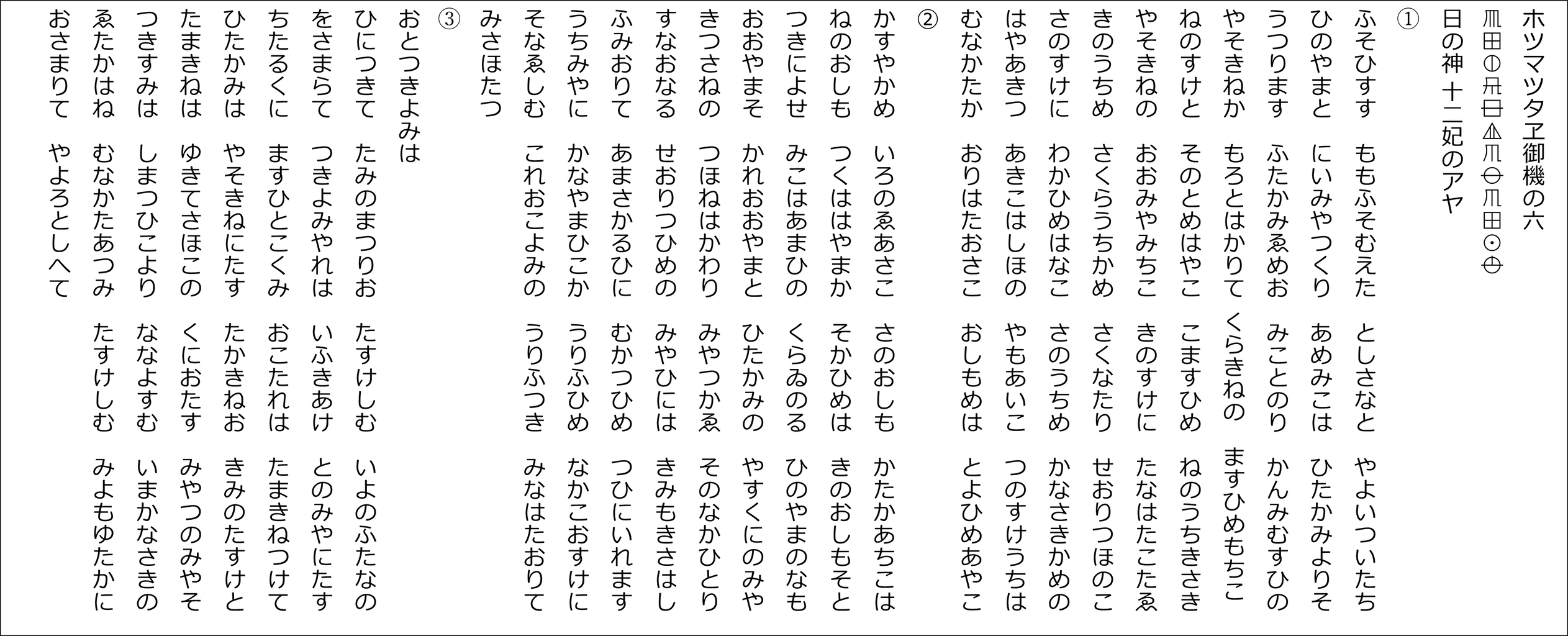 YouTubeチャンネル「たっしー&たー坊の雅流塾」 ホツマツタヱ基本講座に合わせた朗読用の原文です(^^)v
