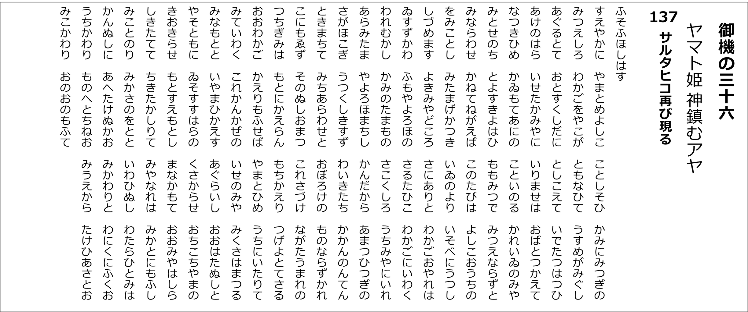 YouTubeチャンネル「たっしー&たー坊の雅流塾」 ホツマツタヱ基本講座に合わせた朗読用の原文です(^^)v